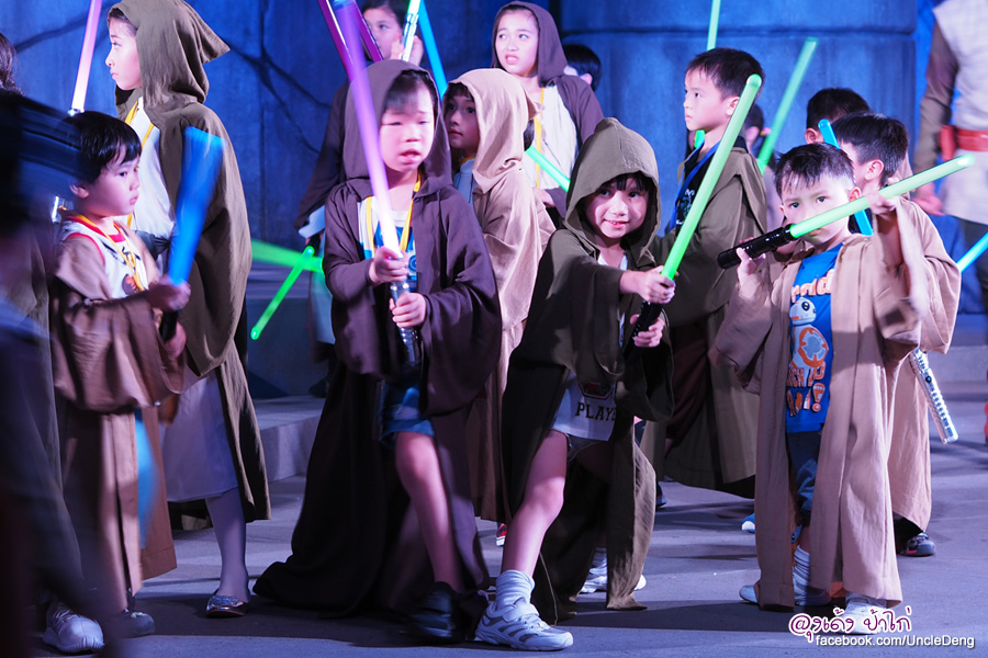 สตาร์วอร์สที่ปลุกเร้าส่งสัญญาณเรียกกลุ่มมือใหม่ที่กระตือรือร้นในเสื้อคลุมสีน้ำตาลให้ขึ้นมาบนเวที ด้วยการอบรมสั่งสอนของเจได มือใหม่จะเรียนรู้วิธีการใช้พลัง (และไหวพริบ) ในการใช้ไลต์เซเบอร์ แต่บัดนี้จักรวรรดิได้ผลักดันเจไดไปยังที่ห่างไกลของกาแล็กซี การฝึกจึงต้องดำเนินไปอย่างลับๆ ที่ Jedi Temple อันเก่าแก่