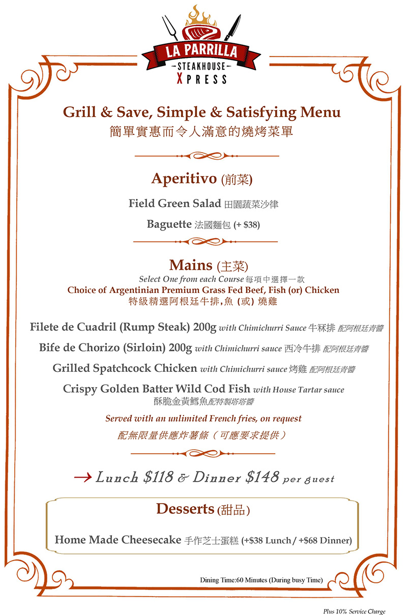 La Parrilla Steakhouse Xpress, SOHO สเต็กเนื้ออาร์เจนติน : ร้านอาหาร Central ฮ่องกง