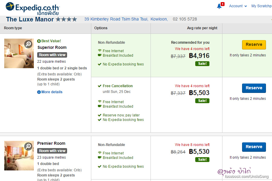 การจองห้องผ่าน Expedia ที่ลุงเด้งป้าไก่ ตรวจสอบราคามา จัดว่าอยู่ในกลุ่มที่ค่าโรงแรมถูกที่สุด และในทุกๆ ราคา จะรวมอาหารเช้าไว้ด้วย ซึ่งดีงามมากๆ