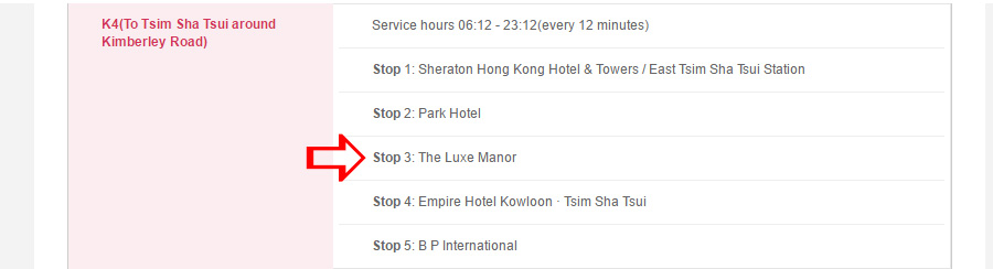 มาลงที่สถานี Kowloon แล้วต่อรถ Free Shuttle Bus หมายเลข K4 มาลงหน้าโรงแรม